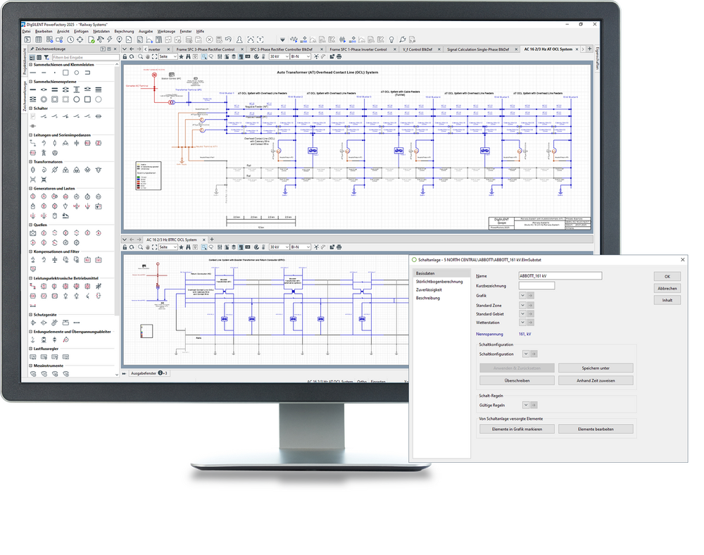 - Jegliche Art von vermaschten und radialen Wechselstrom- und Gleichstromnetzen mit 1, 2, 3 und 4 Phasen mit kombinierter AC- und DC- Modellierung für alle verfügbaren Analysefunktionen