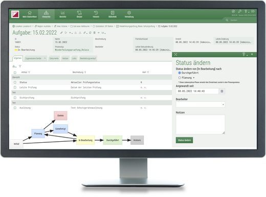 Jeder Prozesstyp kann mit einem vollständig konfigurierbaren, als Lebenszyklus modellierten Arbeitsprozess versehen werden. Prozesse und Aufgaben können mit Geräten und Einstellwerten verbunden werden, um Korrelationen anzuzeigen. Beispiele für Prozesse sind u.a. Wartungsarbeiten, Inbetriebnahmen von Geräten, Turnusprüfungen von Schutzgeräten sowie die Erstellung von Störlichtbogen-Warnschildern. Letzterer Prozess kann in StationWare unter Verwendung eines bestimmten Störlichtbogen-Lebenszykluses und entsprechender Berichte und Skripte durchgeführt werden. Berechnete Parameter für Störlichtbogen Warnschilder können aus PowerFactory in StationWare importiert werden. Die Verwaltung von Businessprozessen beinhaltet dieselben Funktionen wie die Verwaltung von Schutzeinstellungen, zu denen auch das Versenden von E-Mail-Benachrichtigungen und die Unterstützung des Bearbeitungsverlaufs gehören.