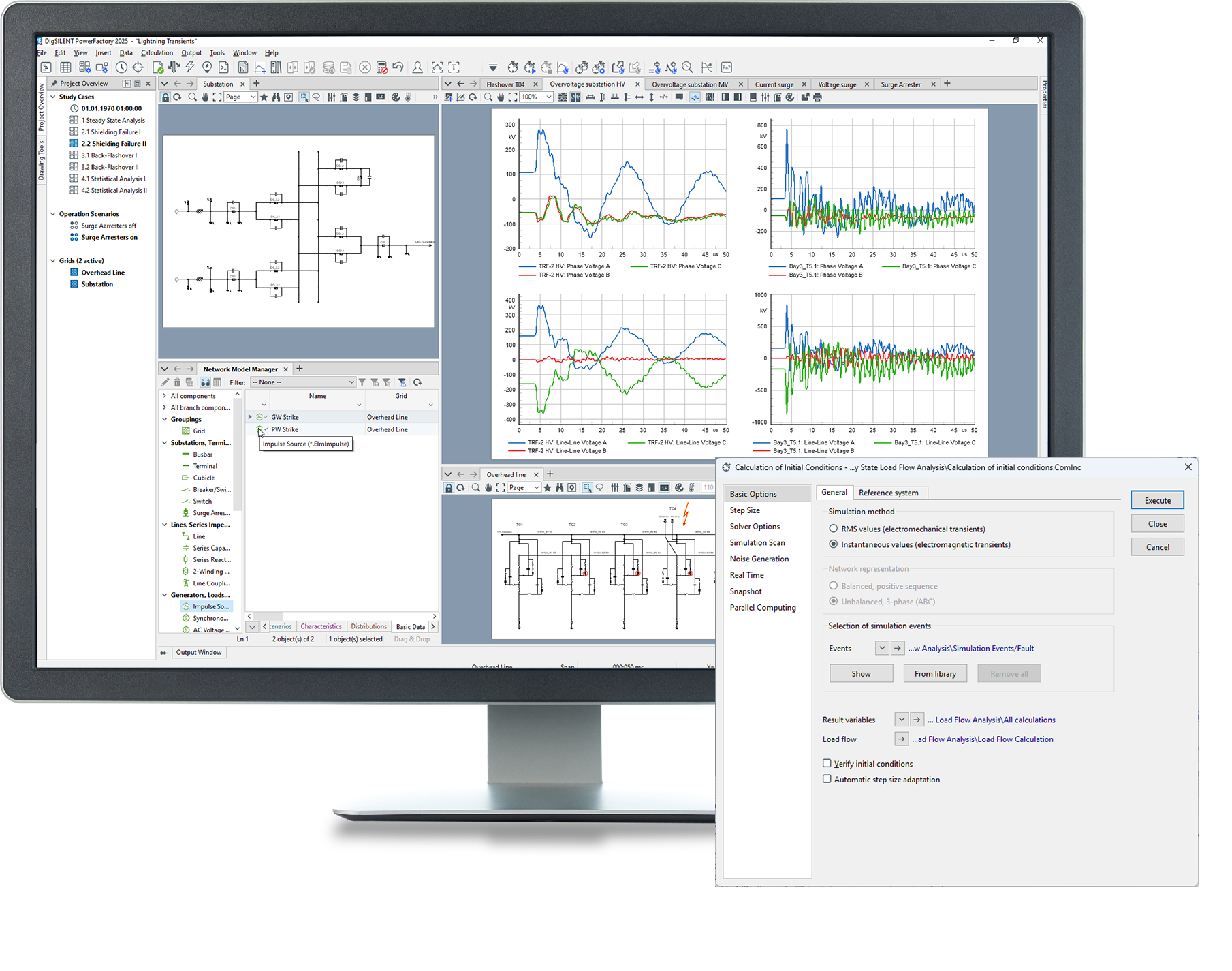 - Insulation coordination analysis including temporary (TOV), switching (SOV) and lightning (LOV) transient over-voltages