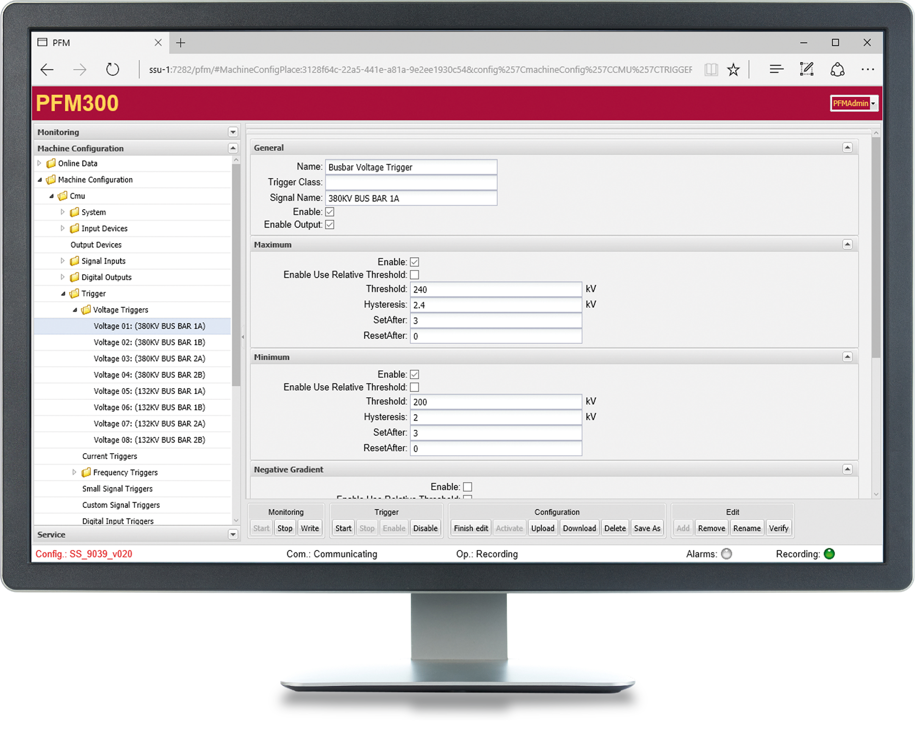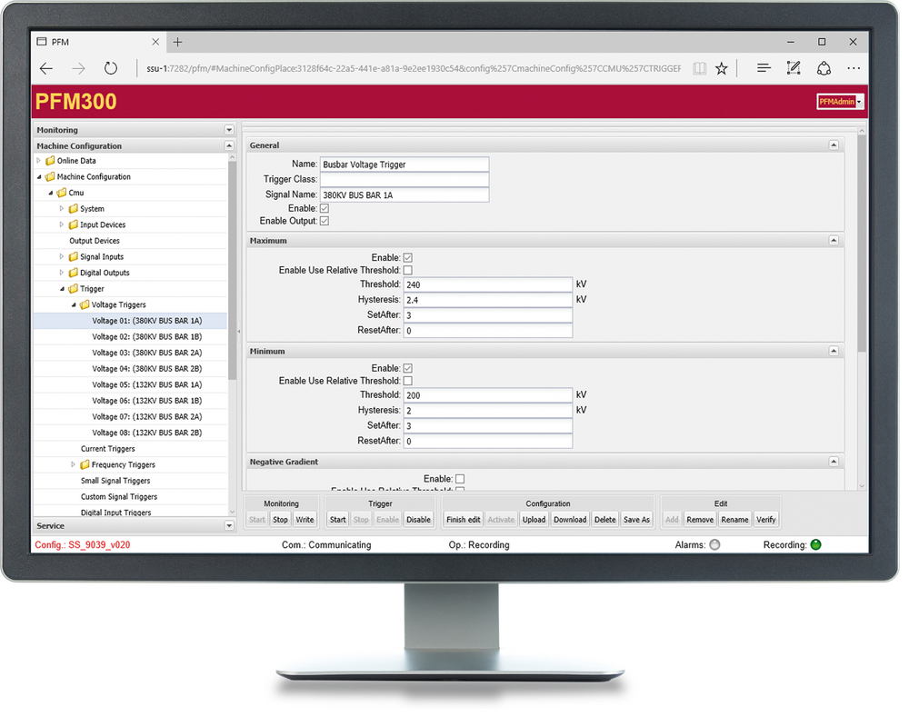- Database-based event viewer for PFM events such as triggers, warnings, alarms and SOE (sequence of events) with multiple screen arrangement, individual filter options and export functions