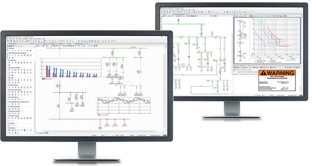 - Arc-Flash Analysis for AC and DC systems, according to IEEE, NFPA, DGUV and EPRI calculation methods