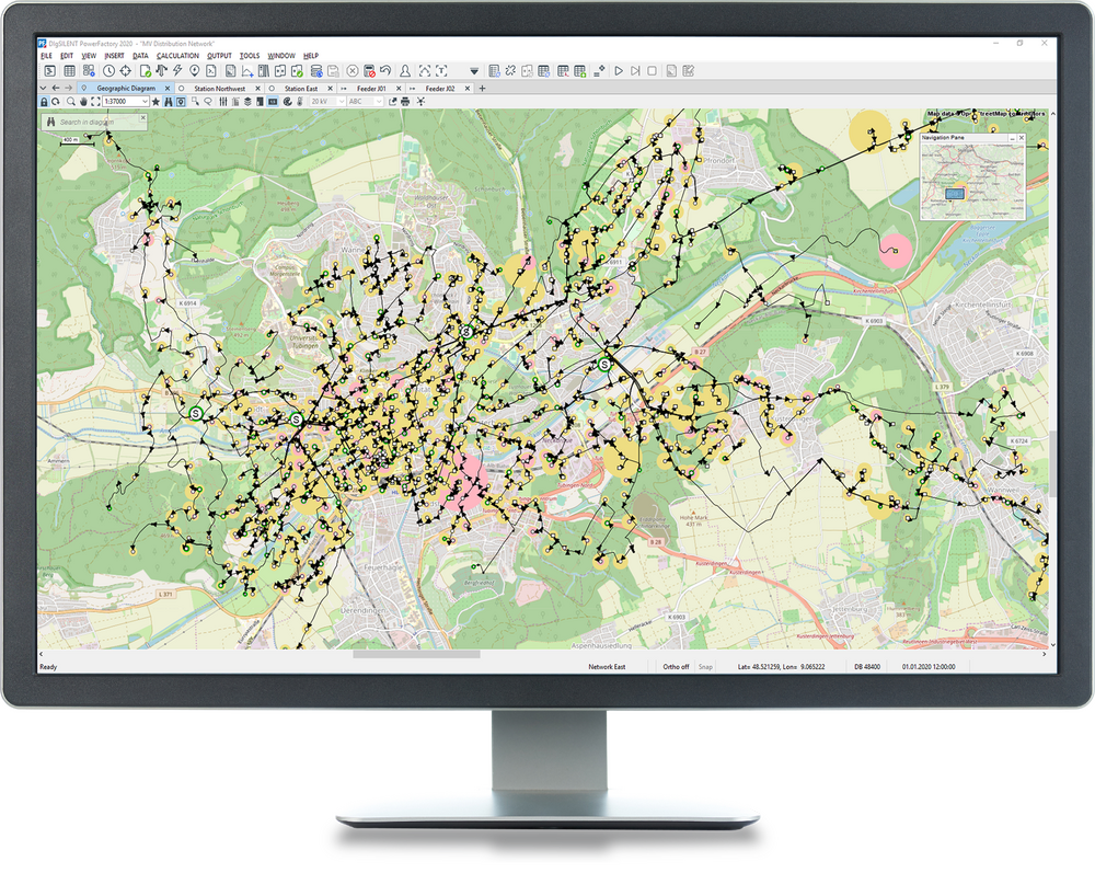 Likewise, PowerFactory is the product of choice for business process automation in distribution planning and operation. As an example, the combined MV/LV calculation for the distribution grid of a whole country (>2 000 primary substations and > 25 000 MV feeders and > 845 000 LV grids) has been automated using PowerFactory and bulk exports of GIS data.