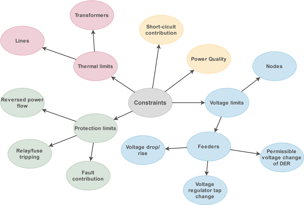 - For the validity range of the constraints the complete network, a specific network region such as a feeder or a custom set of elements can be used.