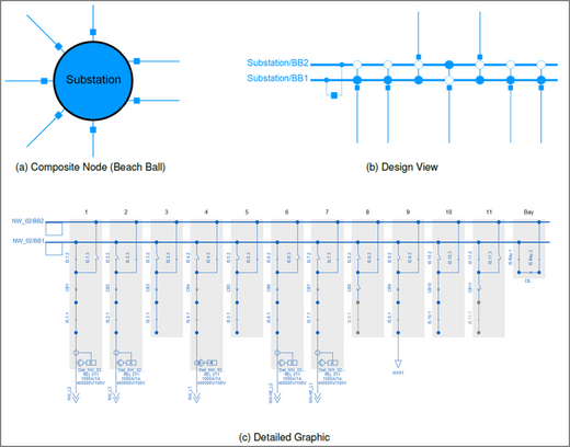 PowerFactory offers three levels of detail for the graphical representation of substations from which the user can choose, as indicated in Figure 4.