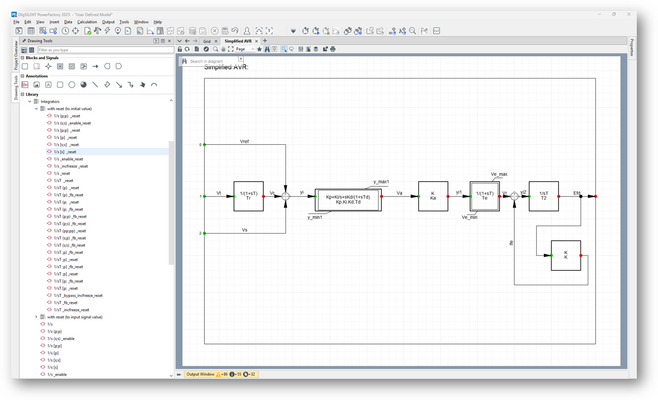 Block Diagrams can be used to create dynamic models, for example for protection relays and control systems, using Composite Model Frames and either DSL (DIgSILENT Simulation Language) or Modelica.