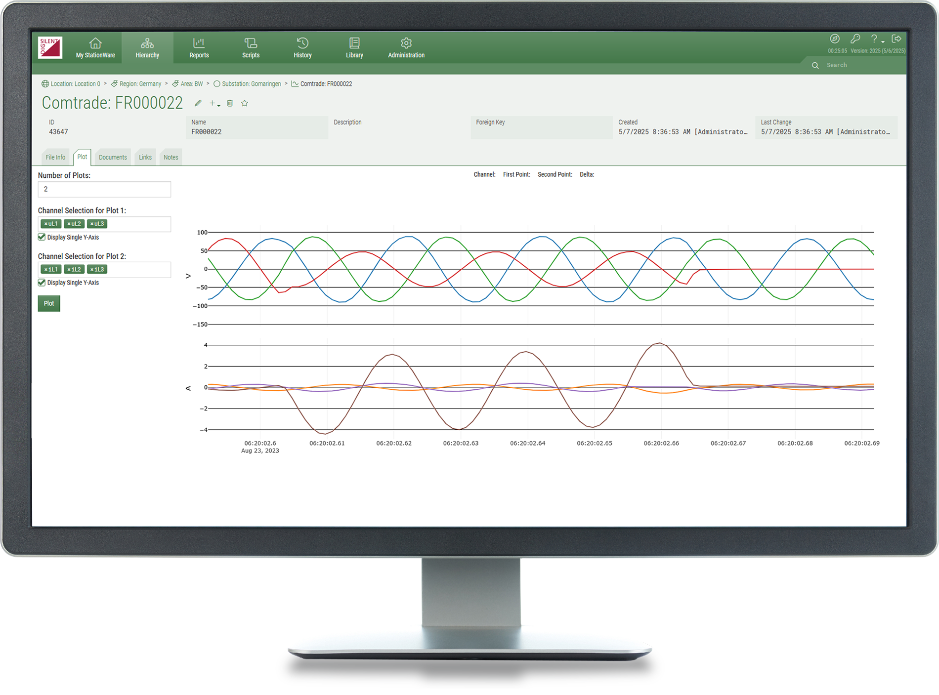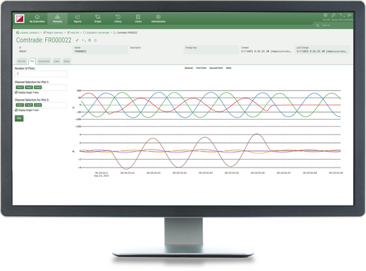 In the energy supply sector, the standard COMTRADE format is generally used to store and exchange digital and analog measurement and event data. In the event of a fault, protection devices in particular store time-resolved measurement data, such as voltages and currents, as well as system status information in COMTRADE format. This data can then be used to analyse faults, derive appropriate actions to resolve the cause of the fault and thus restore grid operation. StationWare manages COMTRADE files and offers an important tool for analysing faults with the option of displaying measurement data in diagrams.