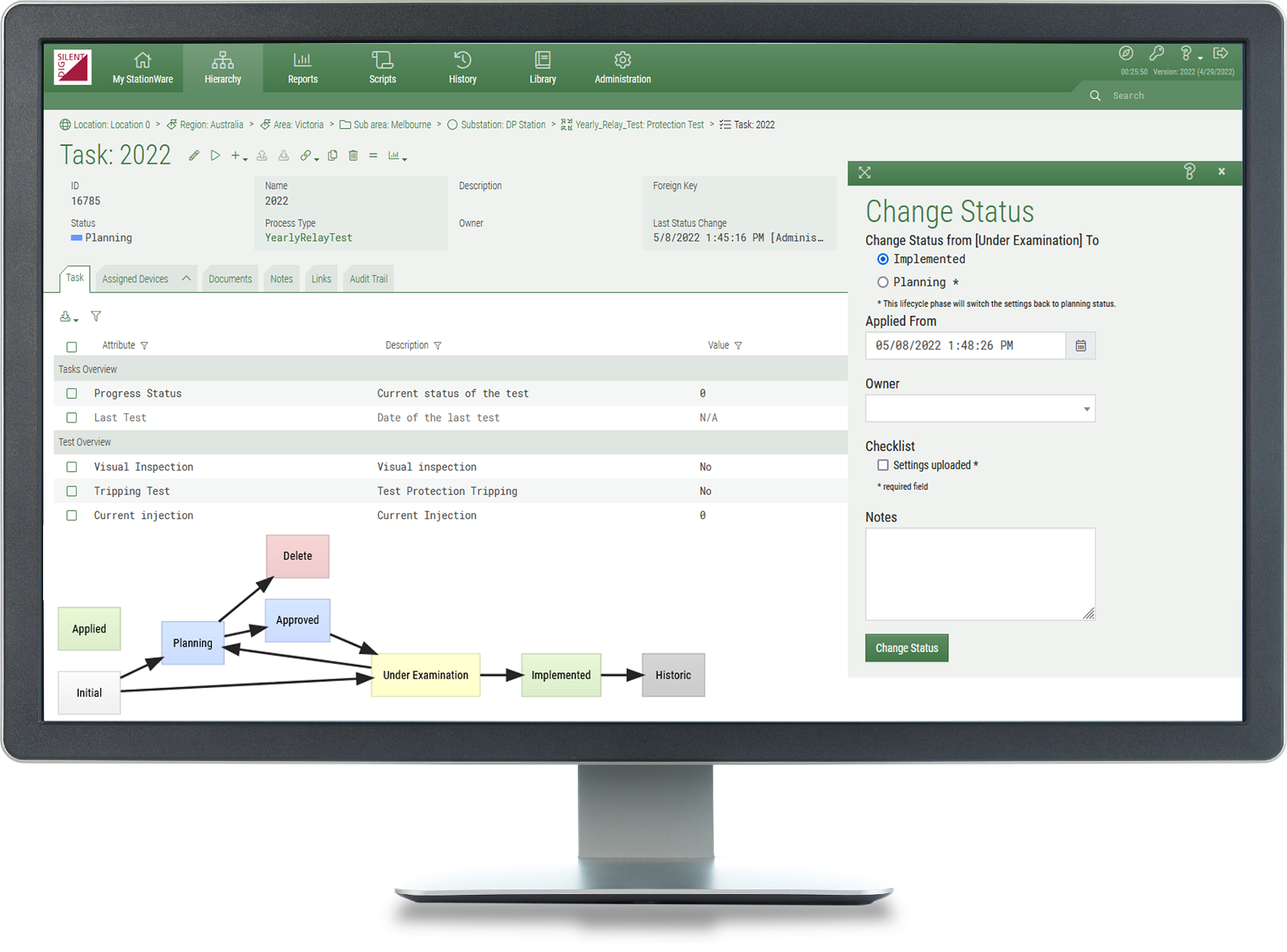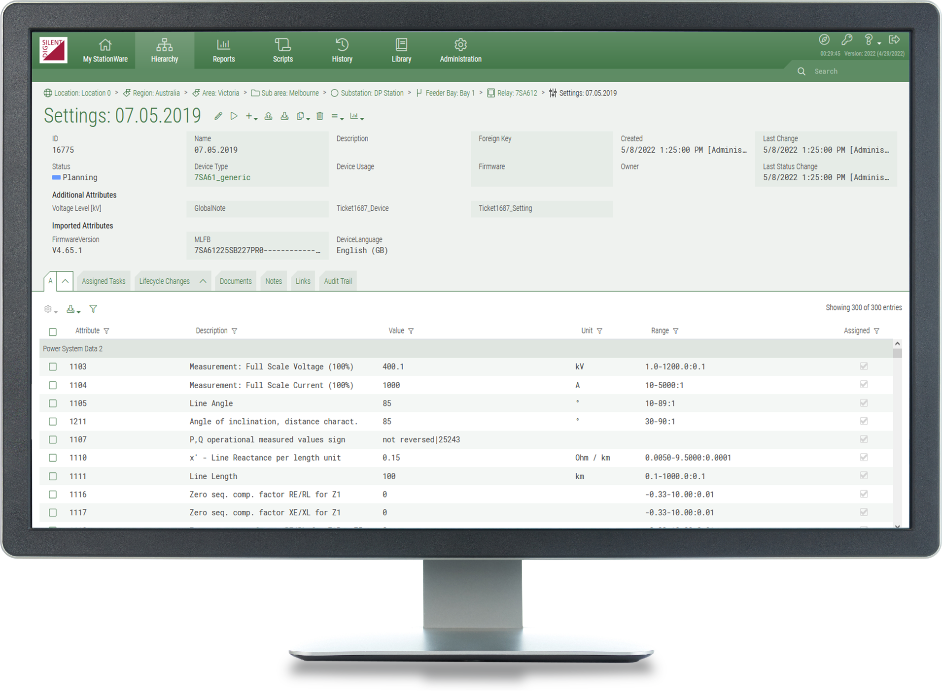 Handling data from networks containing devices from various manufacturers can be problematic from an IT perspective, with each manufacturer requiring installation of its own software. StationWare is a user- friendly, multi-user web application that combines asset management of primary and secondary equipment, protection settings management and business process management. The electrical equipment is represented in a hierarchical structure.